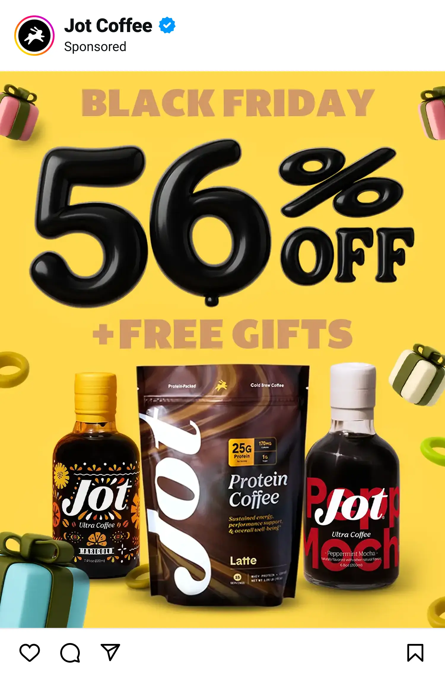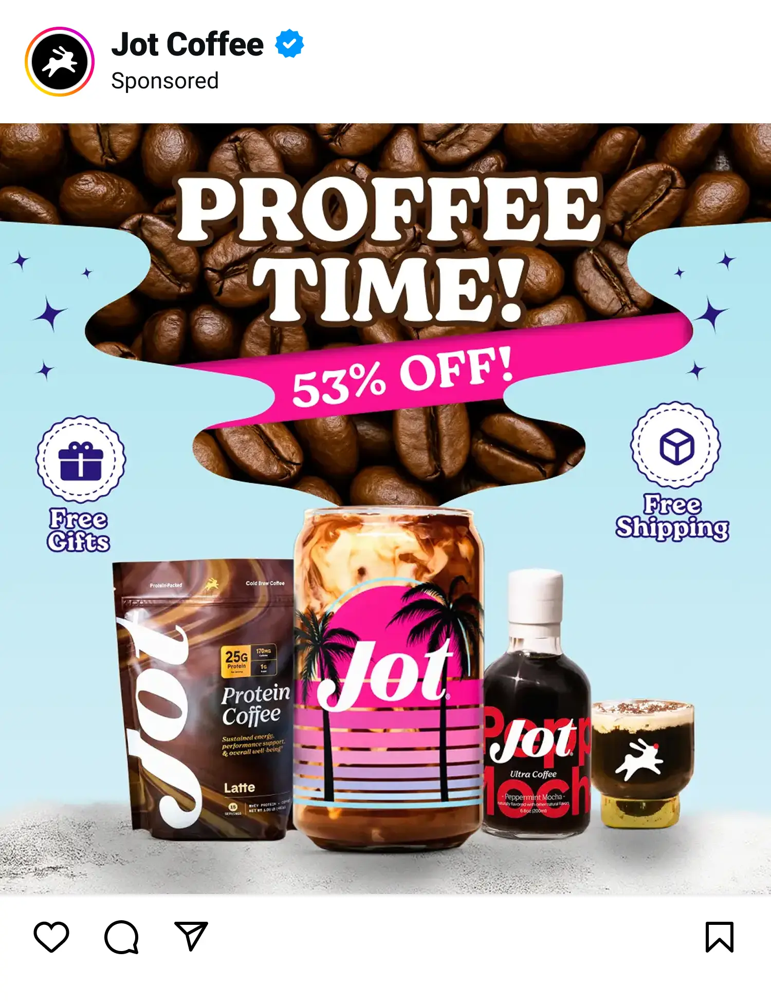 For Jot Coffee, the focus was on showcasing energy, flavor, and convenience in fun, engaging ways. Each ad highlights different angles—from scroll-stopping product shots to lifestyle energy boosts—showing how Jot can fit seamlessly into daily routines while staying visually exciting.